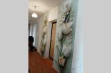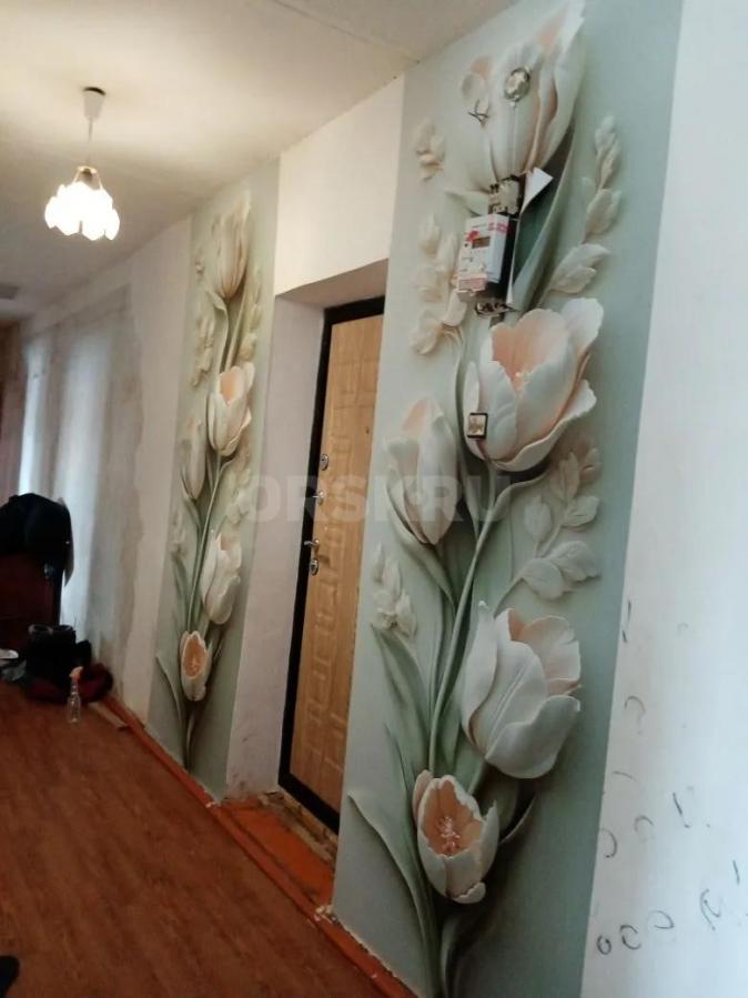 Окна в квартире все пластиковые, новая входная дверь и дверь в зал новая, на полу линолеум, выровненный потолок, сан.узел - пластиковые панели, на полу напольная плитка.