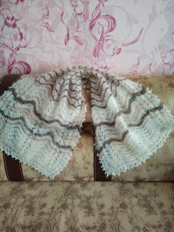 Оренбургская пуховая паутинка, ручная работа .Пух обработан вручную,прядено и вязано вручную на спицах .При носке разносится и будет как пуховый платок.также вяжу палантины-шарфы, кардиганы белого и серого цвета.Район 240 кв.цена шарфа 1800(белого,серого и,полосатого цвета. паутинка 2800.кардиган цена зависит от размера.