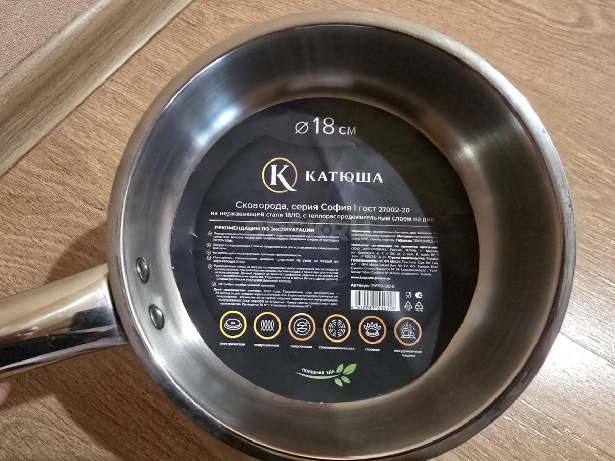 Сковорода Катюша София 18 см с крышкой нержавеющая сталь
