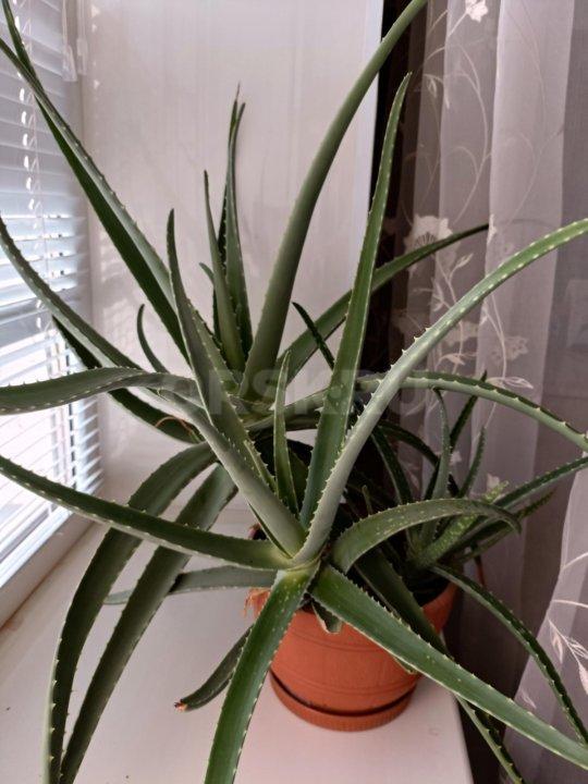 Цветок алоэ Вера. Взрослое растение, 7 лет, в одном горшке три больших цветка - 1100 р., цветок поменьше...