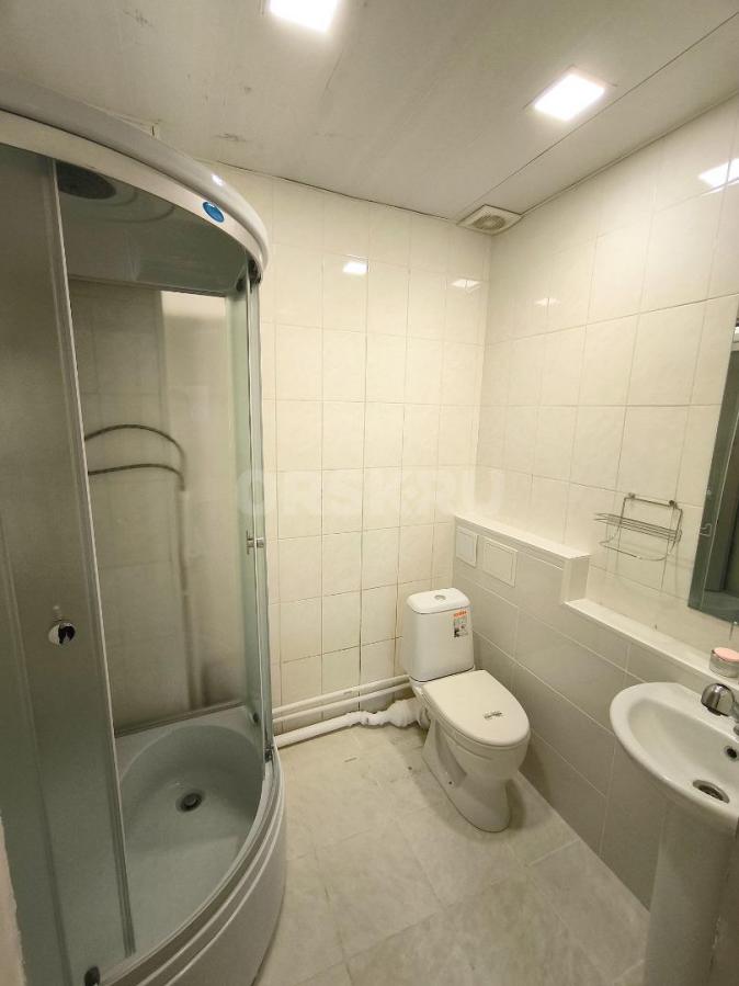 Санузел объединён и облицован кафелем. Заменили водопровод и канализацию, установили счётчики на воду и свет.