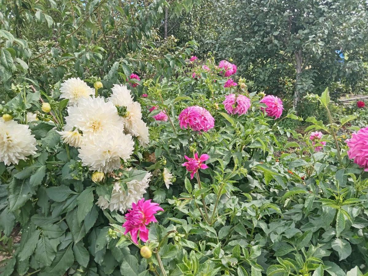 Уличный туалет ;большой бак,электричество.Яблони ,груша,абрикос,жимолость;много кустов смородины,малины,4 сорта винограда. 16 кустов роз и др цветов.Участок ухожен.