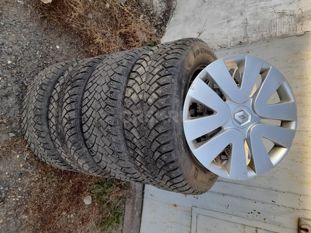 Продам зимнюю шипованную резину Гудрич 205 65 15 на дисках с колпаками! Колёса стояли на Меган 3!