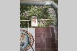 Санузел совмещённый, на стене весит большой водонагреватель.