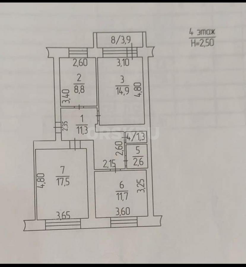 3-к квартира, 1/5 эт., 57.8м