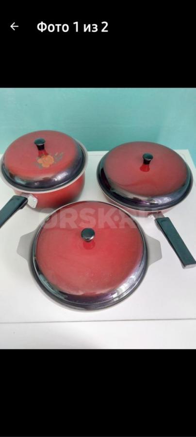 Кастрюля алюминиевая - 10 л - 500 рублей, эмалированная - 5 л - 150 рублей, бидон - 3 л - 200