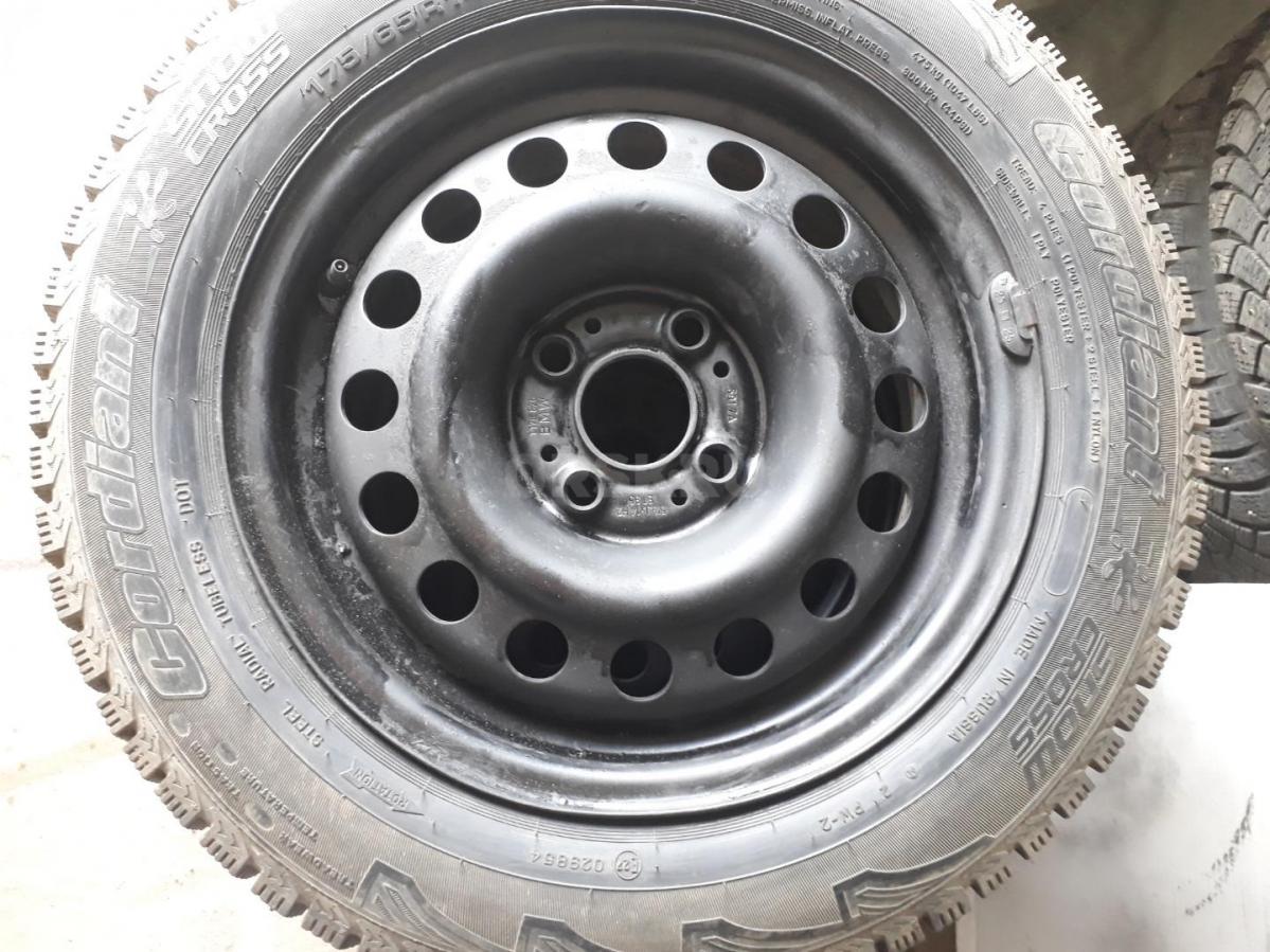 Комплект зимних колес в сборе Cordiant 175/65R14 в хорошем состоянии, диски разболтовка 4 х 100 ( кия,тойота , хендай и т.д.) НА ВАЗ НЕ ПОДХОДЯТ, цена за комплект ( шины + диски)