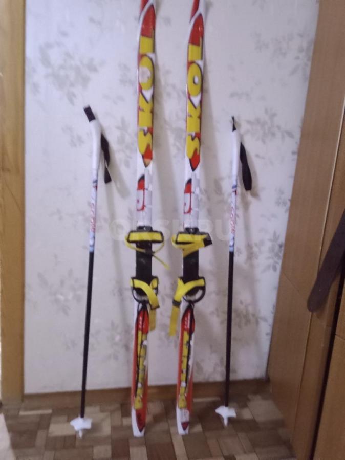 Лыжи беговые для девочки. В отличном состоянии. Комплект. Лыжи 130см, палки, ботинки 32 размера. Новогодняя...