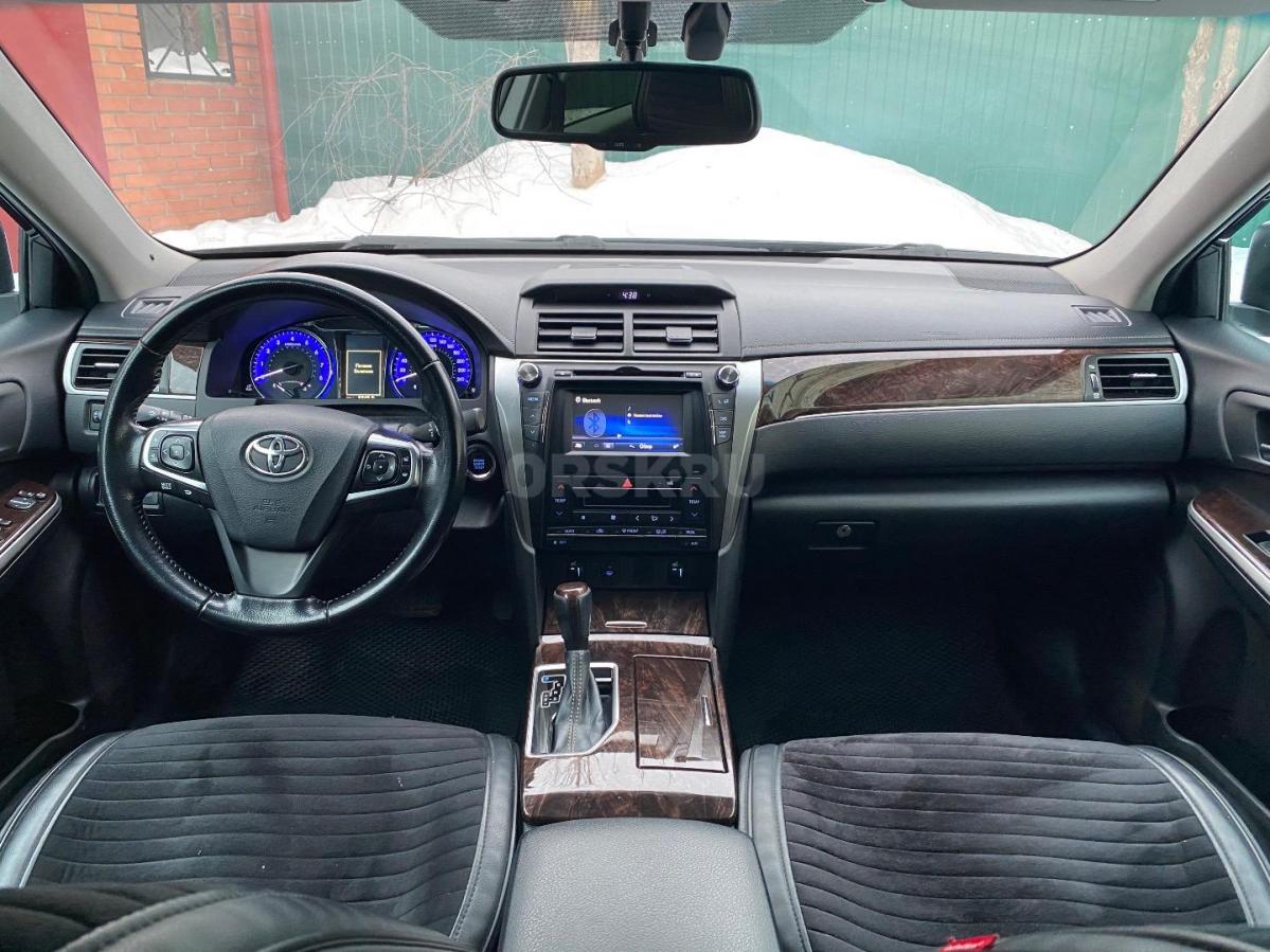 Текст объявления: Продам Toyota Camry 55. Двигатель 2,5. Выпуск декабрь 2015г. Куплена у официального дилера в 2016г. Я собственник. ПТС оригинал. Без дтп. В родной краске, кроме двух косметических подкрасов переходом. Состояние по кузову, полностью заводское, ни один болт не крутился. Оптика вся заводская. Техническое и внешнее состояние отличное. Обслуживание проходит на высшем уровне. Установлены лампы Led в ближний, дальний, туманки, габариты. Сигнализация StarLine с автозапуском. Летняя резина в комплекте. Автомобиль третий в семье, эксплуатация была только в городе. Гаражное хранение. Причина продажи: Приобрел взамен Land Cruiser 200
