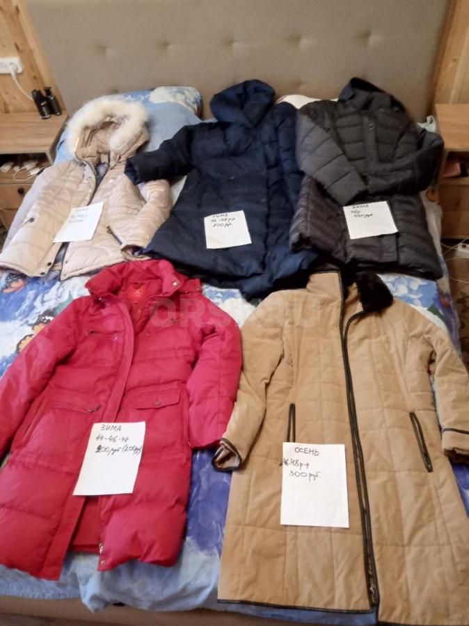Продам дешево зимние, осенние куртки 42-48 размер. Б/у. Есть в хорошем состоянии, есть поношенные. Может кому на дачу, в огород надо. Семья уехала жить на юг. Распродаю. Цены и размеры написаны на фото. Приходите. Выбирайте. Торг уместен. Живу в районе ост.Тбилисская