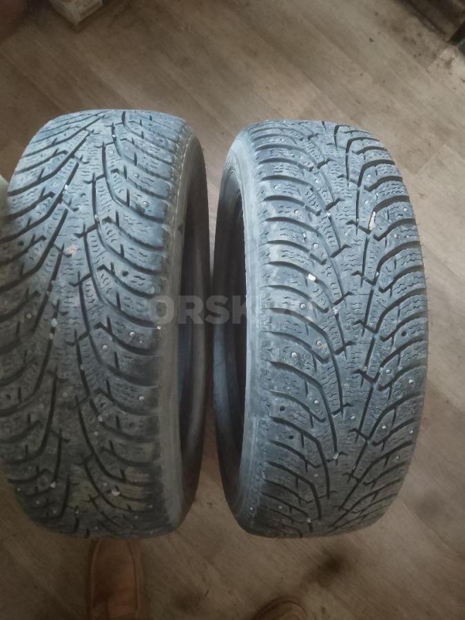 Продам б/у комплект зимних шипованных шин 205/55/r16 три баллона Нокиан Хакка 5, один Сайлун Айс Блейзер...