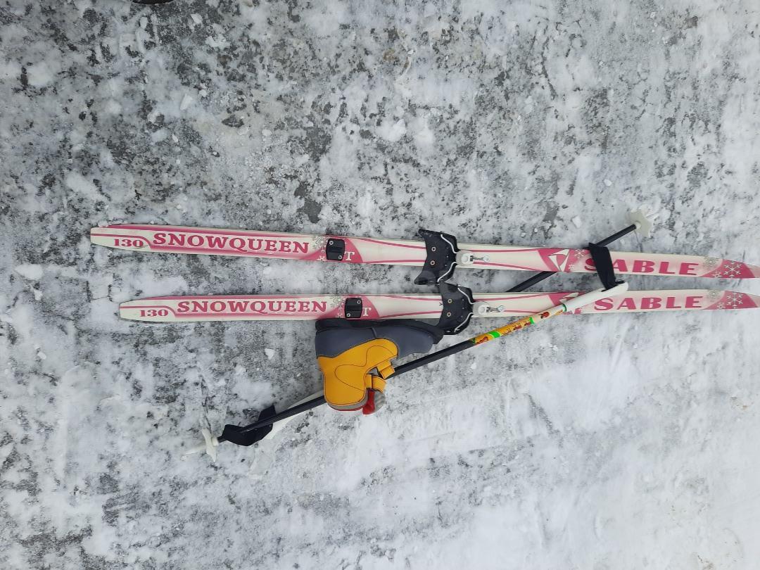 Комплект детских лыж. В отличном состоянии. Длина 130 см. Ботинки 32.