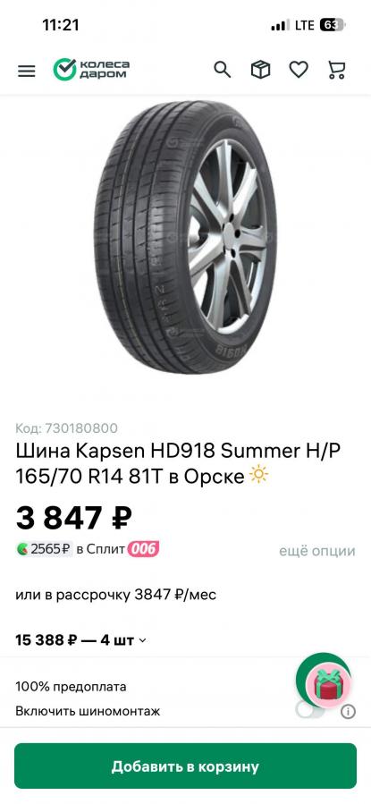 Комплект новых летних шин KAPSEN HD918 175/65 R14Резина 25года. Покупалась в октябре. Проехала 500км