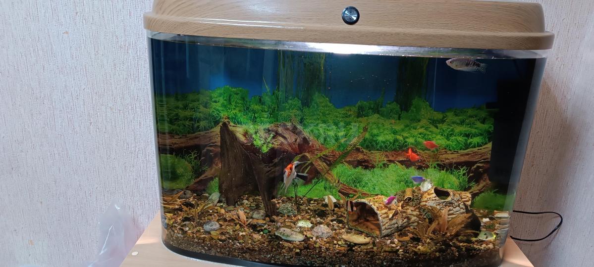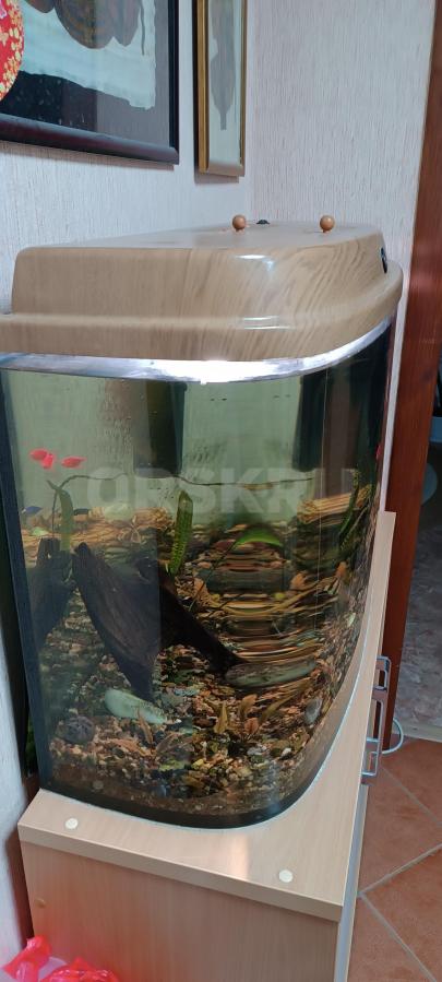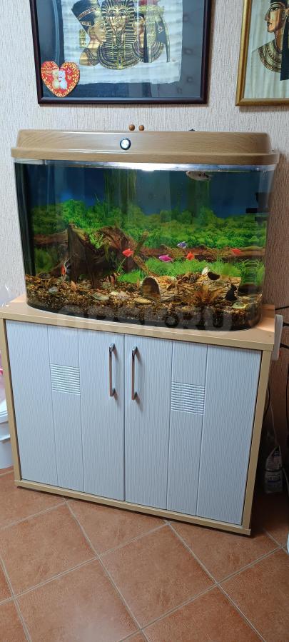 Продам панорамный аквариум на 150 литров вместе с рыбками и тумбой