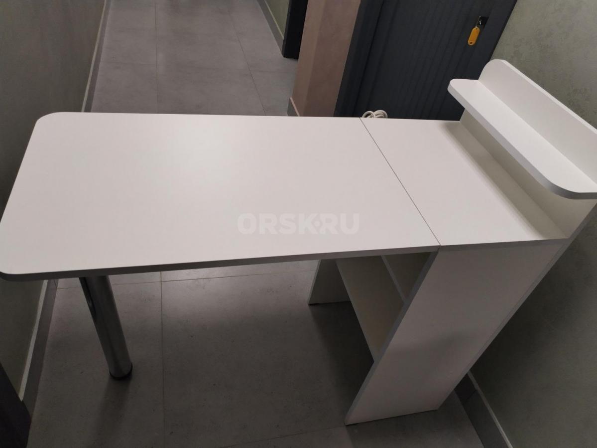 В идеальном состоянии. Размер столешницы 90х60см. Высота 75см. Материал лдсп 16мм. Торцы - серебристый...