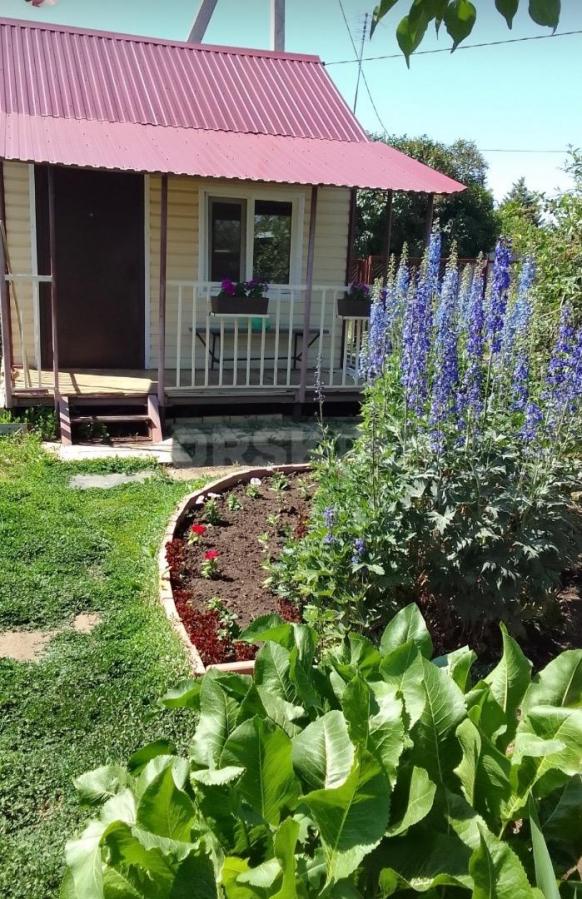 На участке расположен садовый домик с верандой каркасного типа, домик обшит металлосайдингом, крыша покрыта проф ЛИсТОМ.