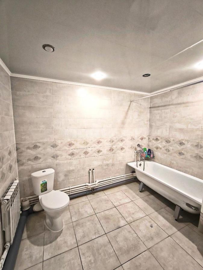 Просторный санузел полностью с отделкой кафелем, установлена новая сантехника.