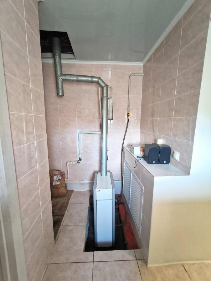 Для подачи горячей воды на кухню предусмотрена газовая колонка, за отопление дома отвечает современный котел.