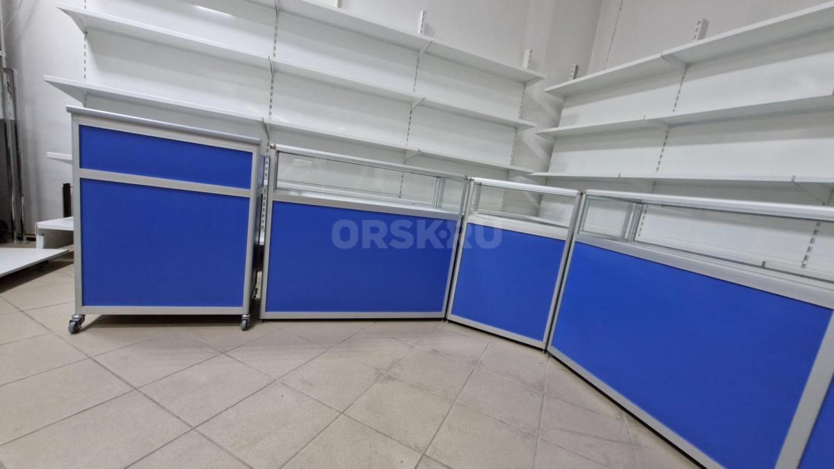 Эконом панели с тумбой пристенные, стеллажи металлические, разборные,прилавки б/у в хорошем состоянии