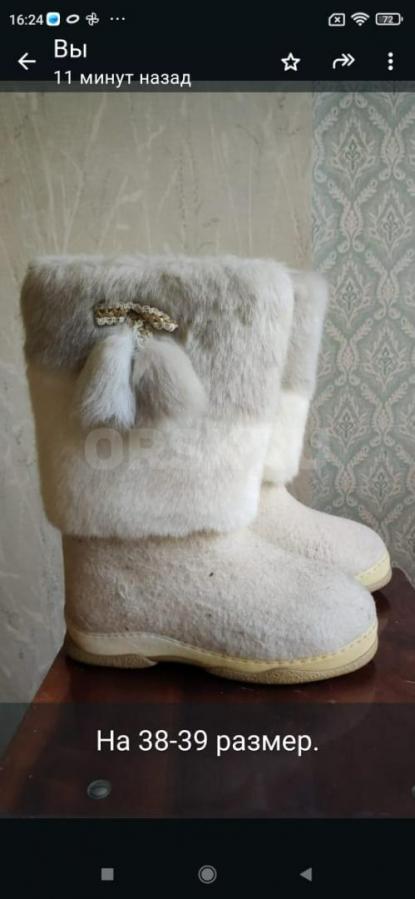 Валенки на прорезиненной подошве. Светлые, с декоративной меховой отделкой. Практически новые: одевали несколько раз. На 38-39 размер.