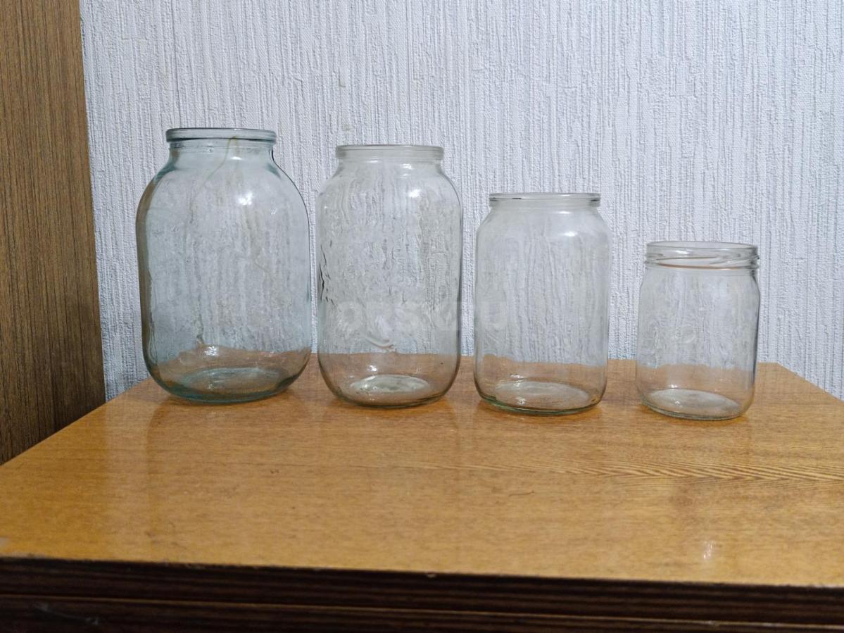 Стеклянные банки: 0,5л по 20р; 1л по 30 р; 1,5 л по 40 р.; 2л по 50 р.. Банки в небольшом количестве.