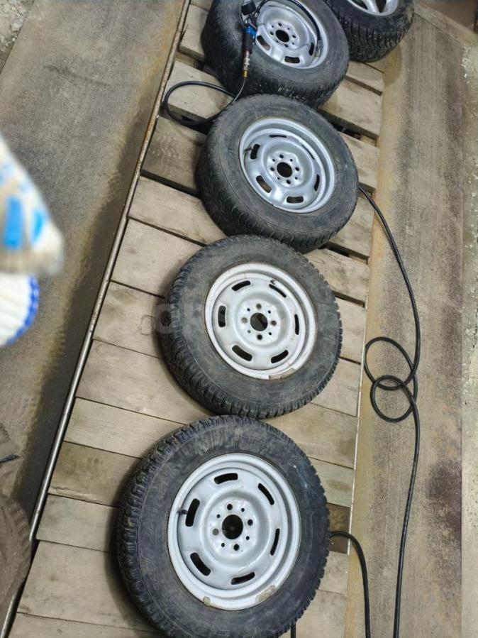 Продам комплект зимних колёс R13 ВАЗ 4 штуки остаток шипов процентов 50 Все 4 колеса с камерами Разболтовка...