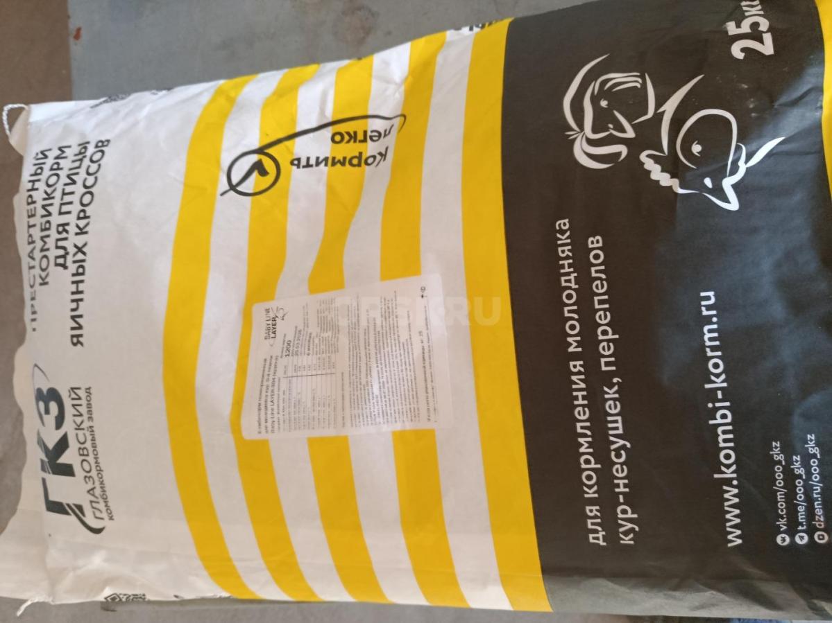 Реализуем Глазовский комбикорм для цыплят бройлеров старт от 0 до 25 дней 25 кг 1400 рубДля цыплят несушек...