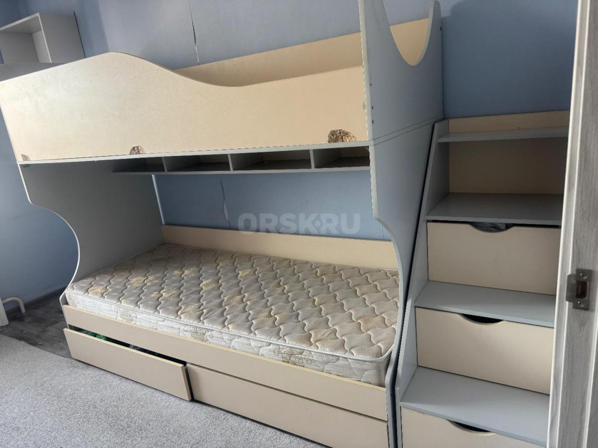 Продам кровать двухъярусную 90*200 б/у , серо- бежевая ,есть ящики для белья или одежды. Лестница крепкая надежная тоже с ящиками под каждой ступенькой. Есть два скола ( повредили немного при закручивании болтов ) Матрасы тоже продаются ( можно приобрести отдельно)