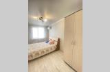 В квартире выполнен качественный ремонт: новая медная электропроводка, выровнены стены, натяжные потолки, заливной пол - сверху ламинат единогоцвета по всей квартире, пластиковые стеклопакеты, балкон застеклен, ванная с санузлом в кафеле.