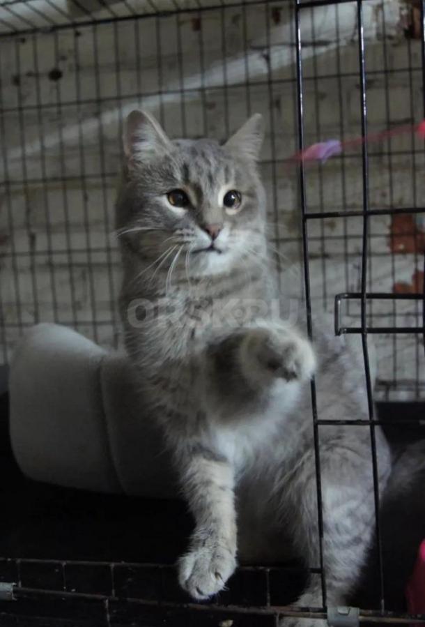 У этого котика косит один глазик и очень слабое зрение. Найден на улице с примёрзшей лапкой. Сейчас он находится в приюте г. Орска.