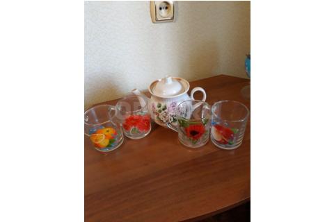 Чайник и 4 стеклянные кружки -150 руб., бокалы для пива 50
