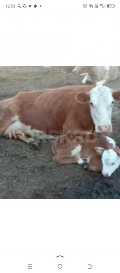 Продам корову второй отёл вместе с телёнком, отелилась 2 марта, бычок. Находится в Теренсае Адамовского...