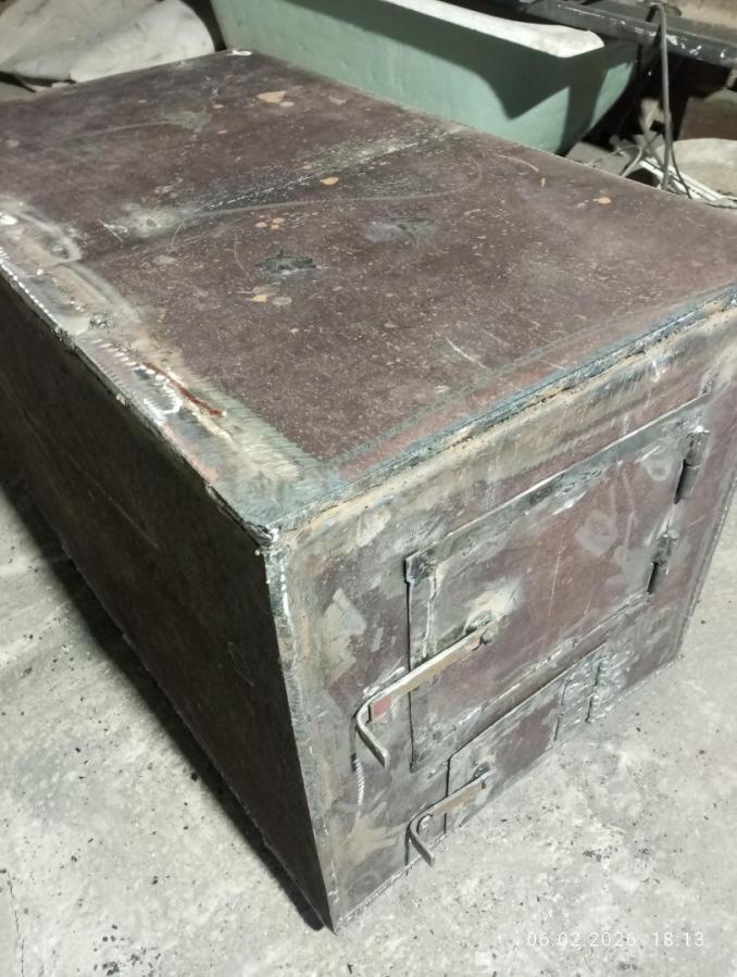 Продам печку высота 540мм ширина 520мм длина 910 толщина металла 8мм колосники съёмные 25тр
