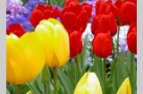 Красные и жёлтые цветы садовыех тюльпанов в районе станции Орск («Ключ», ТЗБ, 6й мкр, самая близкая остановка маршрутов 25,12,18 у жд.Профилактория)